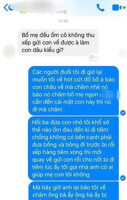 Nhưng việc người vợ được người chồng nhắn tin rằng, để con lại nhà ngoại về chăm bố mẹ, cô vợ kiên quyết không về và nhắn với “gọi em gái, em rể về chăm” thì cũng đã xảy ra với nhiều anh chồng... chai mặt.