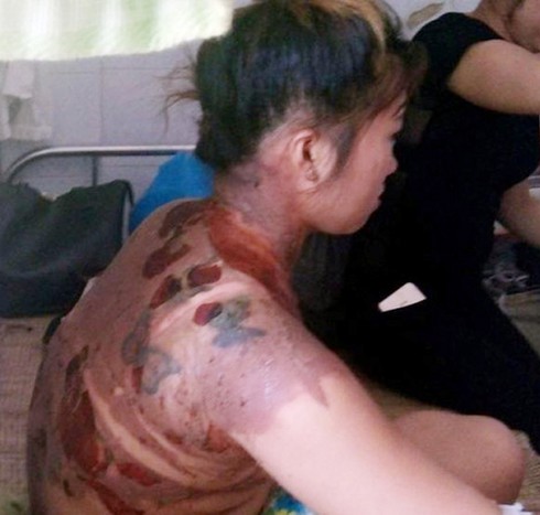 Chị V. bị bỏng ở phần lưng khi bị dội nước sôi lên lưng |