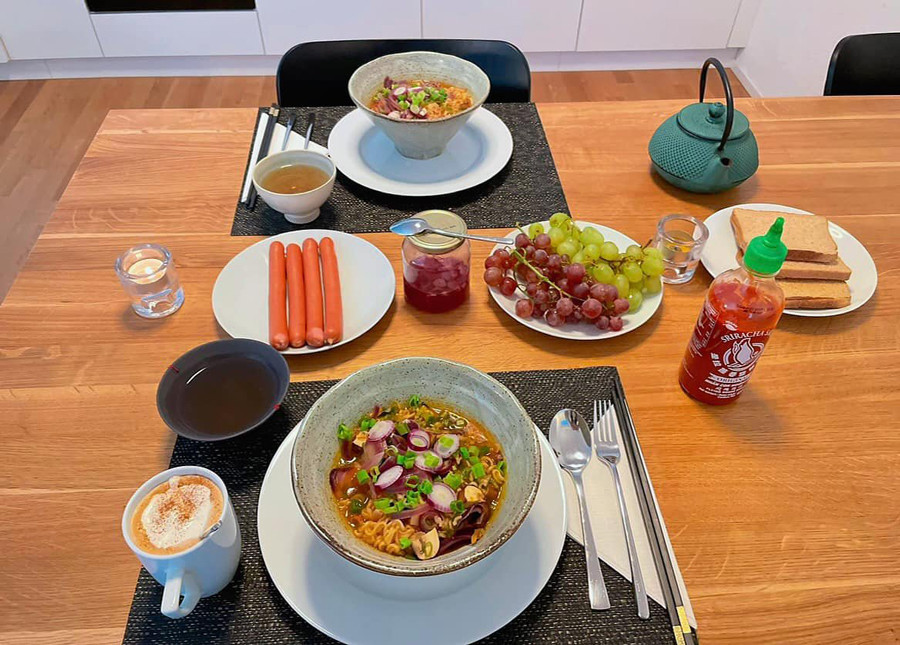 Trong bữa cơm hàng ngày, Ivo thường là người đứng bếp. Chị Hồng phụ trách bày biện mâm bát và chuẩn bị đồ uống. Với chị Hồng, bữa cơm gia đình rất ý nghĩa.