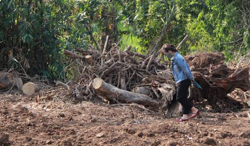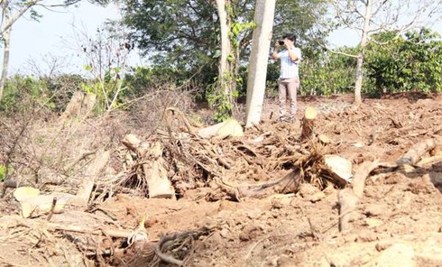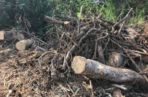 Cũng theo ông Chung, do rẫy ông nằm gần suối, không có lối vào nên trước khi đào bới cây, người khai thác đã xin mở một con đường đất dài khoảng 150m, đi qua rẫy của 2 hộ khác và trả khoảng 14 triệu để đền bù thiệt hại cây trồng. Sau đó, người khai thác đã huy động 4 xe cơ giới gồm máy múc, máy kéo cùng nhiều người vào đào, cắt cây trong 4 ngày rồi vận chuyển ra ngoài.