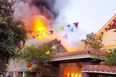 Căn nhà gỗ giá trị bùng cháy dữ dội, ước tính thiệt hại hàng tỷ đồng. |