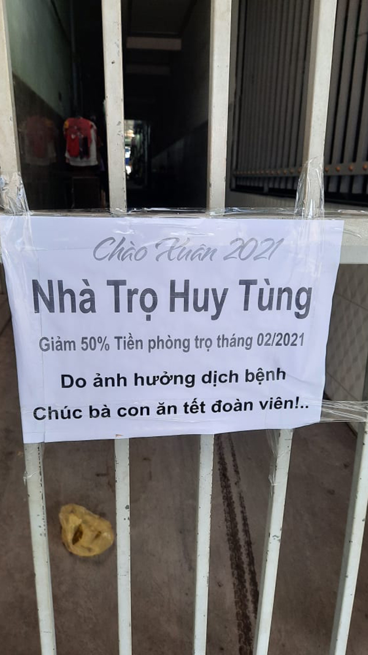 Những ngày qua, nhiều người ở trọ tại Bình Dương vui mừng khi chủ trọ thông báo giảm 50% tiền phòng trong tháng 2/2021 - tháng nghỉ Tết Nguyên đán Tân Sửu năm 2021.