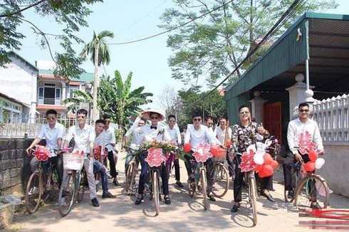 Chú rể dẫn hàng chục trai làng đạp xe đến rước vợ và phản ứng bất ngờ của cô dâu