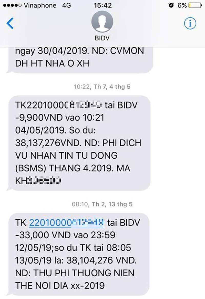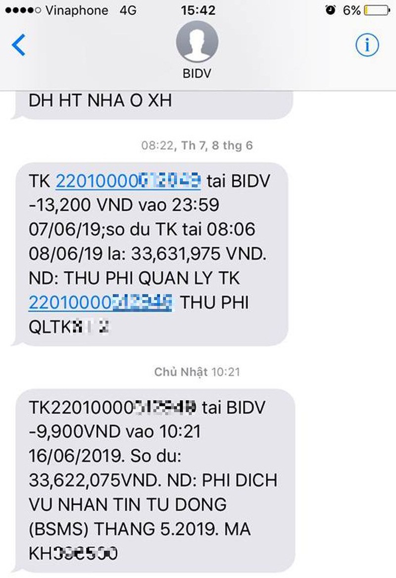 Phí quản lý tài khoản, nhắn tin tự động của BIDV. |
