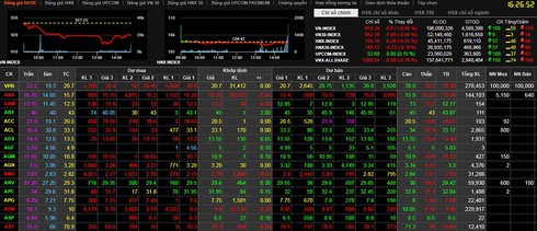 Chốt phiên, VN-Index giảm 8,01 điểm (0,86%) còn 919,24 điểm. Một loạt các mã cổ phiếu lớn giảm giá như: VNM, VCB, SAB, MBB, DXG, BVH, BID, CTG… Trong khi đó, VIC, VHM, VPB đứng giá tham chiếu.