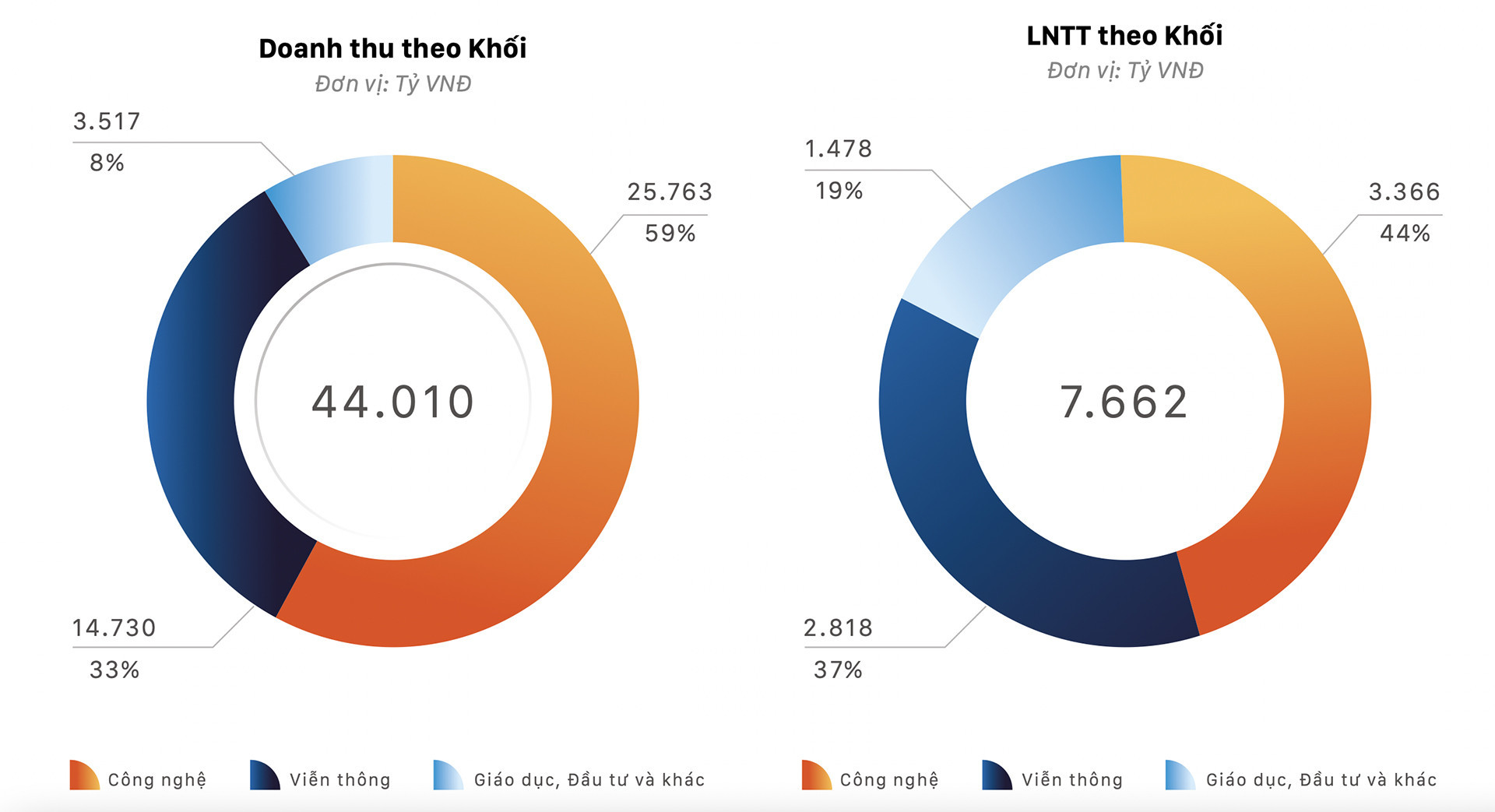 Với doanh thu lần đầu vượt 1 tỷ USD, khối công nghệ đóng góp 58,5% doanh thu và 44% lợi nhuận trước thuế toàn tập đoàn, tăng trưởng lần lượt 23,4% và 22,4% so với cùng kỳ năm trước.