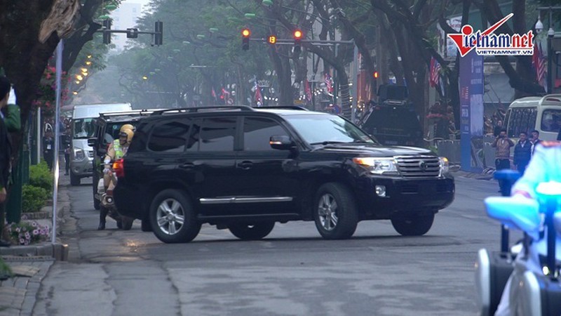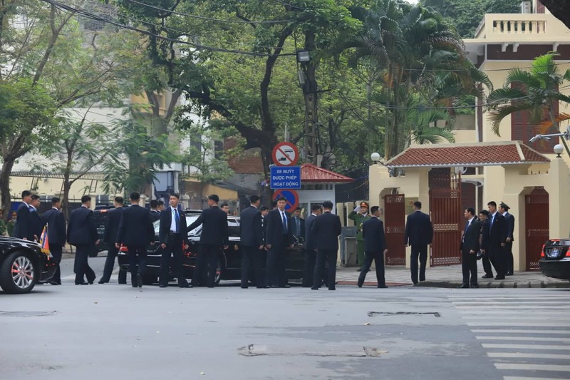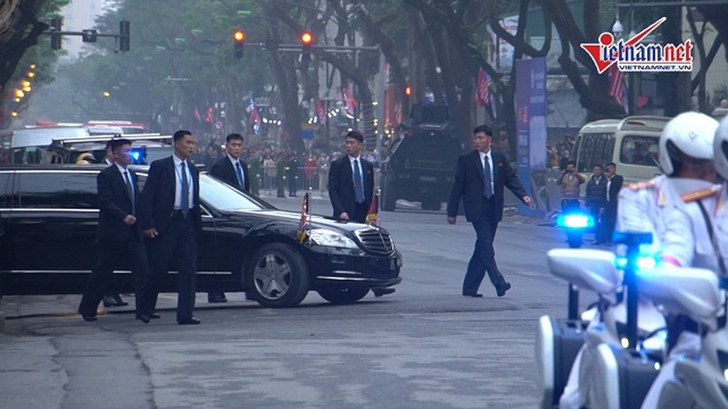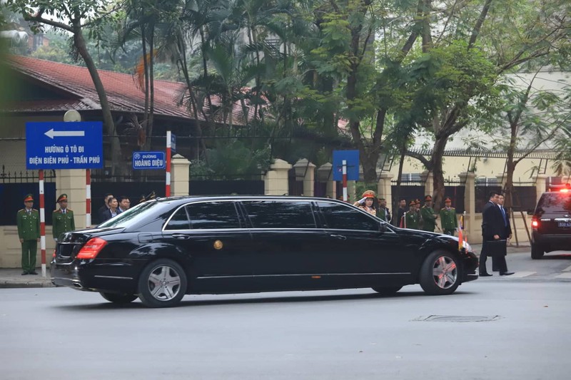 Chiếc xe Mercedes S600 Pullman Guard chở ông Kim Jong-un xuất phát từ khách sạn Melia trên phố Lý Thường Kiệt, đến trụ sở Đại sứ quán Triều Tiên trên phố Cao Bá Quát cách đó 2km.