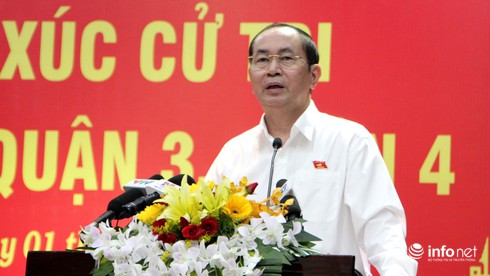 Sáng 1/12, Chủ tịch nước Trần Đại Quang cùng tổ đại biểu quốc hội đơn vị 1 TP.HCM đã tiếp xúc với cử tri các quận 1, 3, 4.