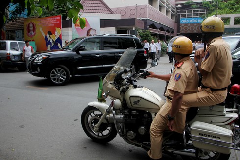 Lực lượng bảo vệ vòng ngoài cho buổi tiếp xúc cử tri. |