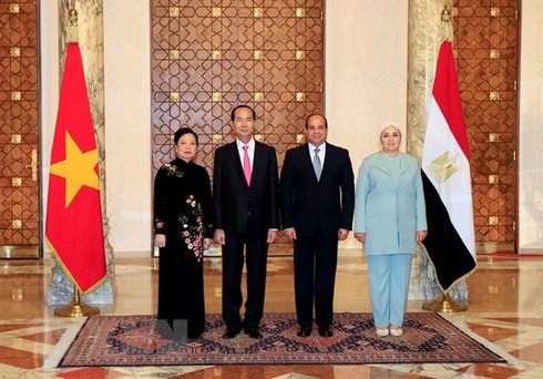 Chủ tịch nước Trần Đại Quang bày tỏ vui mừng đến thăm cấp Nhà nước tới Ai Cập lần đầu tiên trên cương vị Chủ tịch nước CHXHCN Việt Nam và có buổi tiếp Lãnh đạo Liên đoàn các Phòng Thương mại Ai Cập; khẳng định Việt Nam luôn coi trọng quan hệ hợp tác hữu nghị truyền thống với Ai Cập; mong muốn chuyến thăm sẽ góp phần đưa quan hệ hai nước lên tầm cao mới, thực chất và hiệu quả.