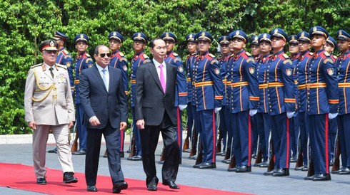 Chủ tịch nước Trần Đại Quang còn bày tỏ đánh giá cao trước sự đón tiếp nồng nhiệt của Tổng thống Al Sisi nhân chuyến thăm chính thức đầu tiên của người đứng đầu Nhà nước Việt Nam tới Ai Cập đồng thời trùng với sự kiện kỷ niệm 55 năm thiết lập quan hệ ngoại giao giữa Việt Nam và Ai Cập.
