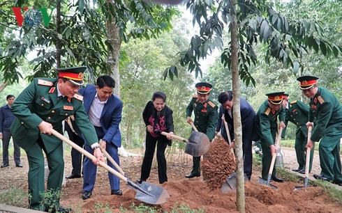 | Chủ tịch Quốc hội trồng cây tại Khu di tích K9. Ảnh: VOV |