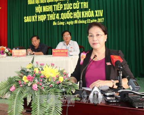 Tiếp tục chương trình làm việc, ngày 6/12, tại thành phố Cần Thơ, Chủ tịch Quốc hội Nguyễn Thị Kim Ngân cùng Đoàn đại biểu Quốc hội đơn vị thành phố Cần Thơ đã tiếp xúc cử tri phường Ba Láng (quận Cái Răng) và phường An Hòa (quận Ninh Kiều).