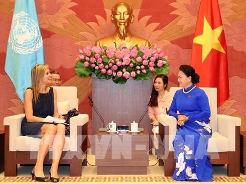 Chủ tịch Quốc hội Nguyễn Thị Kim Ngâ tiếp Hoàng hậu Hà Lan Maxima tới thăm Việt Nam năm 2017. |