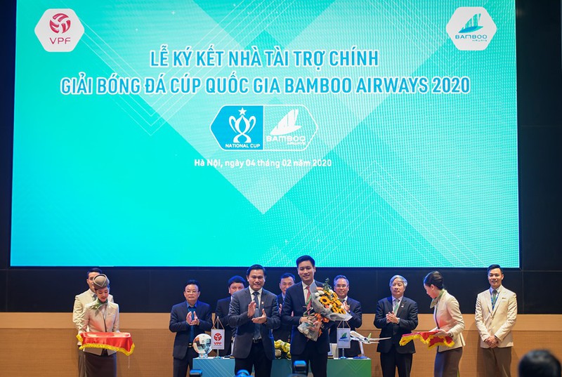 Sáng 4/2 tại Hà Nội đã lễ ký kết hợp đồng tài trợ Cup Quốc gia mùa giải 2020 giữa Công ty Cổ phần Bóng đá chuyên nghiệp Việt Nam (VPF) và hãng hàng không Bamboo Airways.