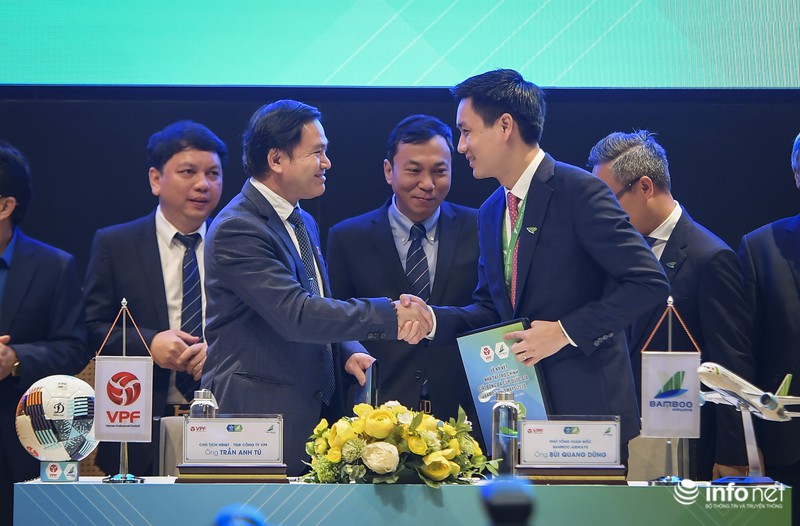 Lễkết hợp đồng tài trợ Cup Quốc gia mùa giải 2020 giữa VPF và hãng hàng không Bamboo Airways. |