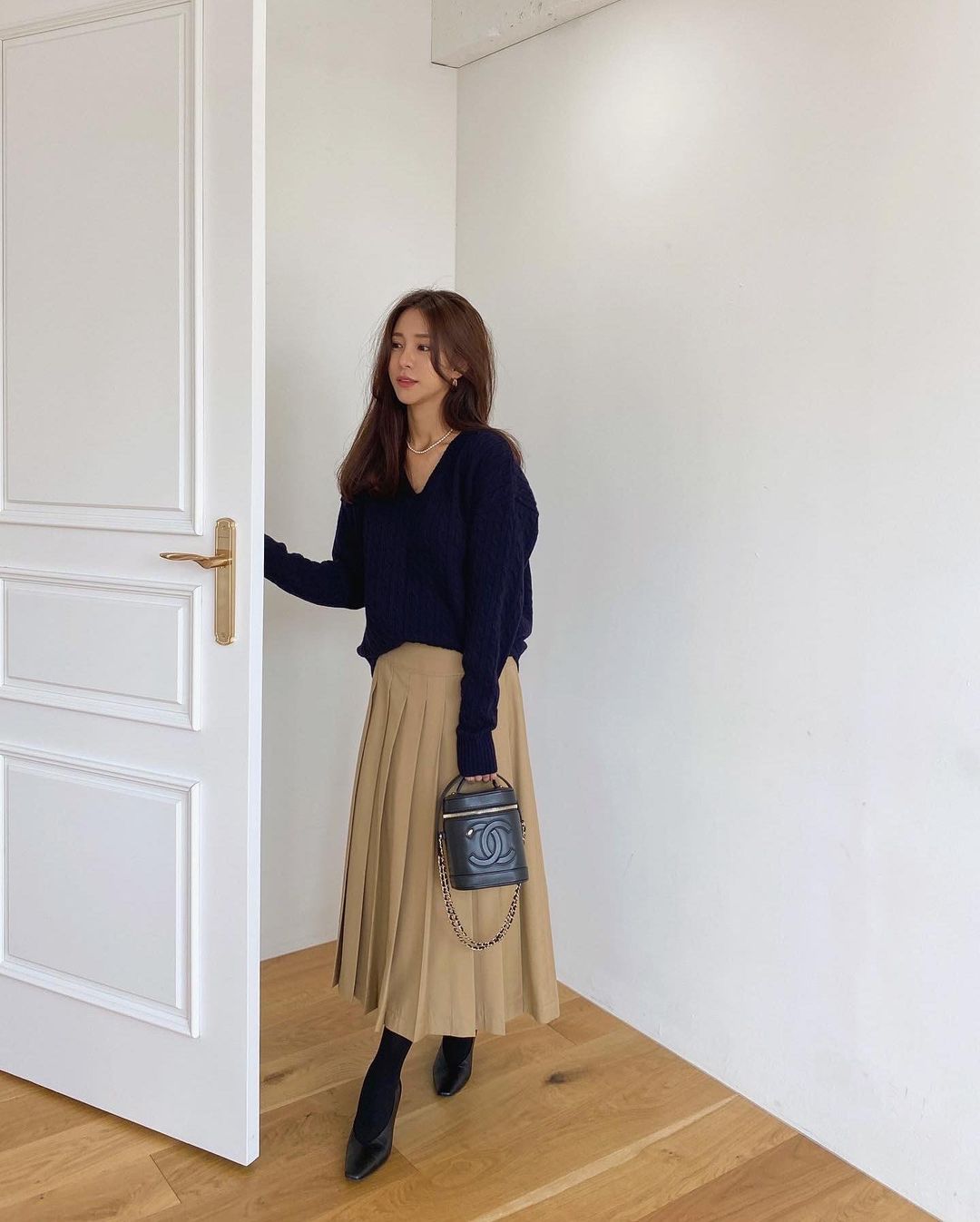 Danh sách những items sắm cho Tết chắc chắn không thể thiếu đi chân váy dài. Vừa khéo, đây cũng là món đồ dù trời nóng hay lạnh diện vẫn ổn. Khi sắm chân váy dài, bạn nên để ý đến nhiều kiểu mẫu, chẳng hạn như: chân váy suông, chân váy xếp ly, chân váy hoa hay chân váy xếp tầng để đa dạng hóa phong cách nhé! Ngày ấm diện chân váy dài thì khỏi lo nhưng nếu vào ngày lạnh, bạn đi boots cao cổ/thấp cổ, hoặc diện tất cao cổ, đi giày loafer là đủ ấm.