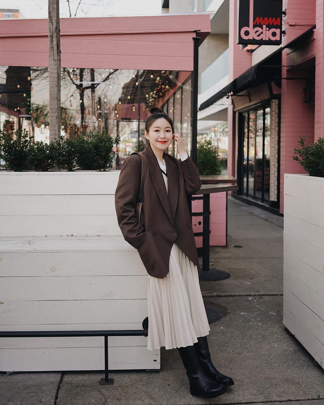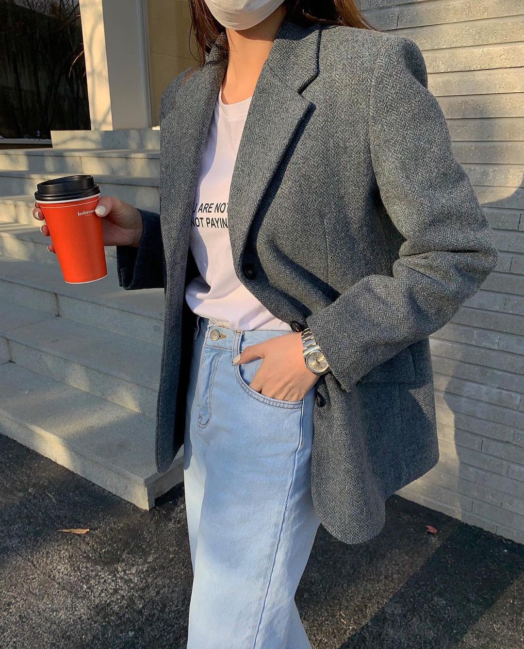 Blazer là một kiểu áo khoác khá nhẹ nhàng, không quá dày mà cũng chẳng mỏng manh. Chị em nên chọn cho mình dáng áo oversized để khi trời lạnh, bạn có thể layer áo cổ lọ và nhiều lớp áo khác bên trong để giữ ấm; còn trong trường hợp trời ấm, mix blazer với áo sơ mi/áo thun là ổn. Cũng phải nói thêm rằng blazer là item rất thanh lịch, phù hợp để diện đi chúc Tết nên bạn đầu tư cho item này là quá chuẩn.