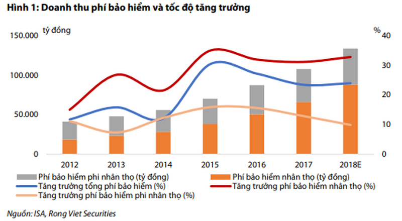 Theo Cục Quản lý và Giám sát Bảo hiểm (ISA), năm 2018 doanh thu phí bảo hiểm toàn thị trường ước đạt 133.654 tỷ đồng, tăng 24% so với năm 2017. Trong số đó, bảo hiểm nhân thọ ước đạt 87.960 tỷ đồng, tăng 33%, bảo hiểm phi nhân thọ ước đạt 45.694 tỷ đồng, tăng 10%.