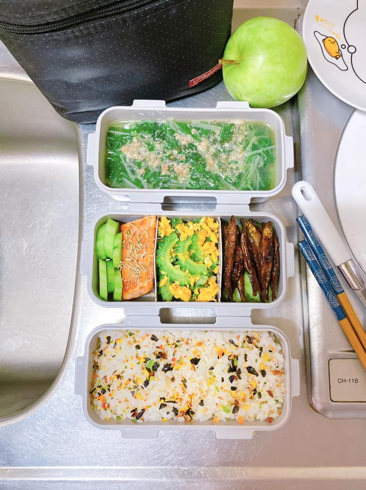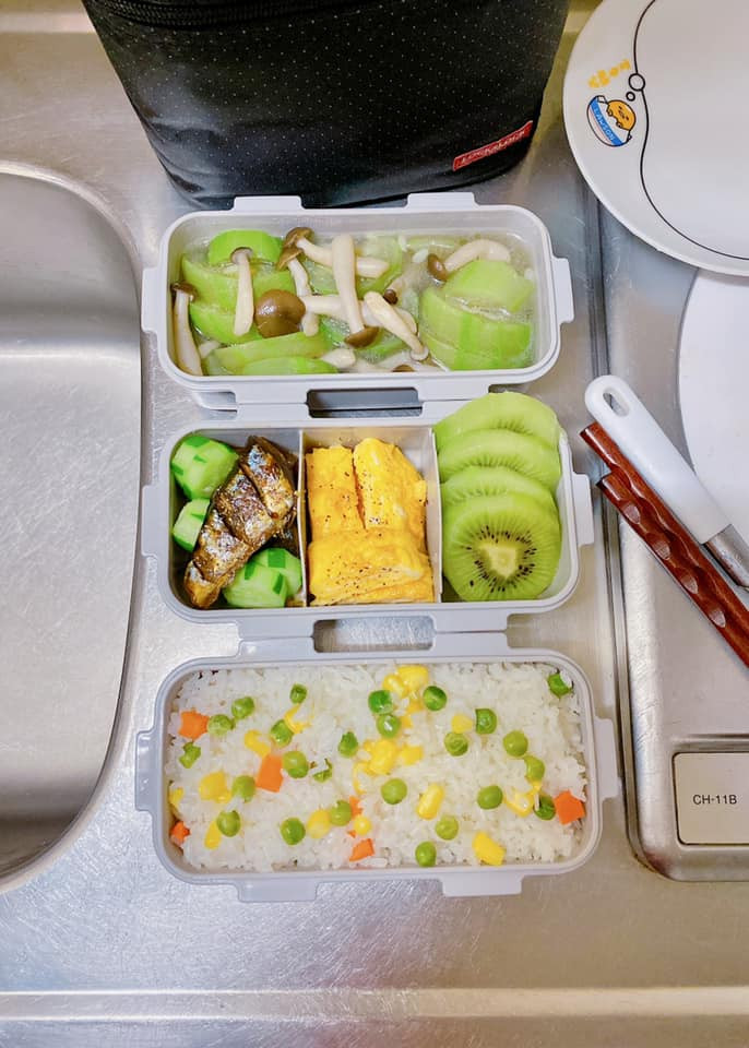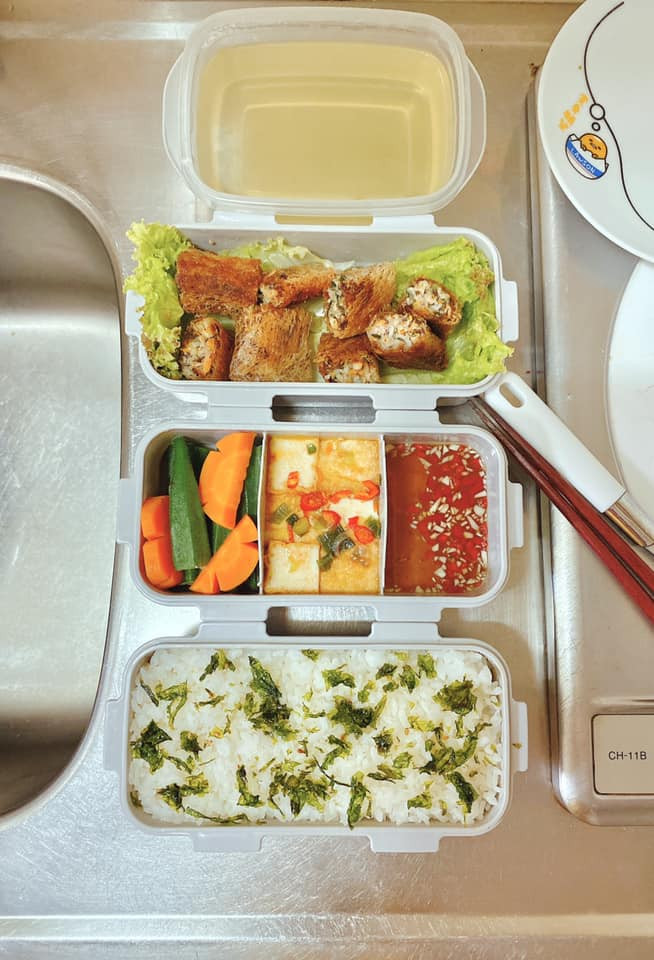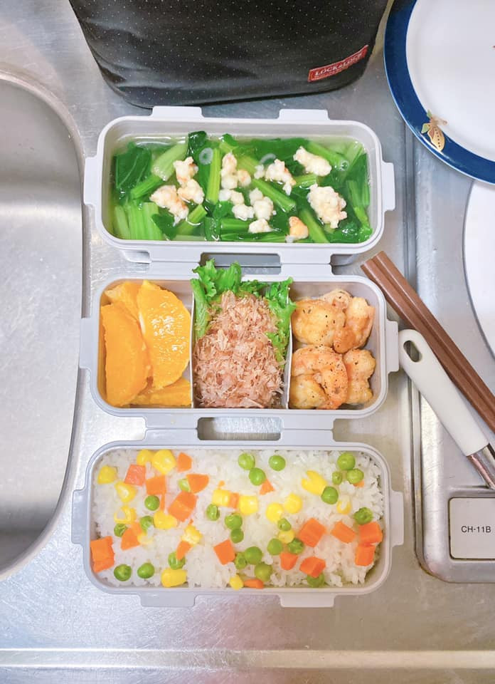 “Để thời gian buổi sáng chuẩn bị hộp cơm nhanh hơn, mình sẽ sơ chế sẵn rau, củ, thịt, cá,... khi cần chỉ lấy ra và chế biến sẽ tiện hơn. Hơn nữa, việc chuẩn bị sẵn như vậy giúp mình không bị quên hay thiếu nguyên liệu nào của món ăn.