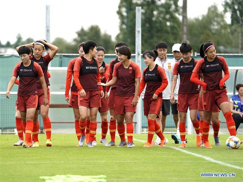 *Chùm ảnh các nữ tuyển thủ Trung Quốc chuẩn bị cho trận gặp Đức tại FIFA Women's World Cup 2019 trên sân Fougeres, Pháp: