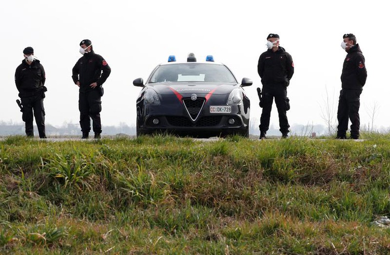 Các nhân viên cảnh sát ở thị trấn Castiglione D'Adda, Italy đi tuần tra. |