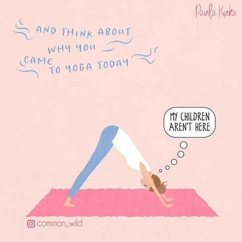 Vì sao bạn đi tập yoga? Đôi khi chỉ vì ở đây bọn nhóc không bám theo bạn. |