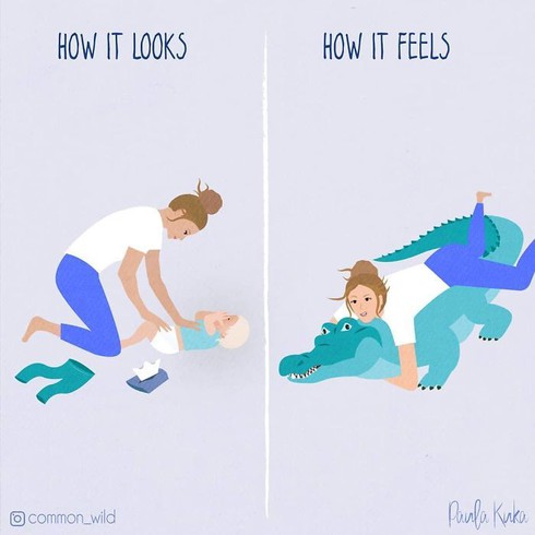 Cuộc sống của một bà mẹ bỉm sữa có những góc khuất mà nhiều người không thể tưởng tượng được nếu họ chưa từng trải qua. Những bức vẽ ngộ nghĩnh và hài hước của nghệ sĩ Paula Kuka đã phần nào đặc tả rất chính xác về công việc này.