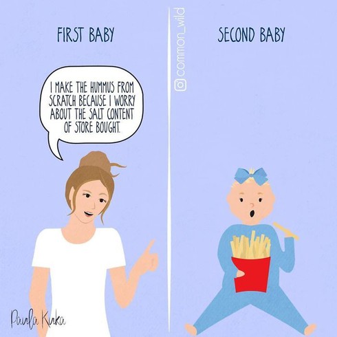 Với con đầu lòng, bạn có thể dùng toàn hàng organic, nhưng với đứa thứ 2, nhiều khả năng bạn có thể cho ăn đồ ăn nhanh. |