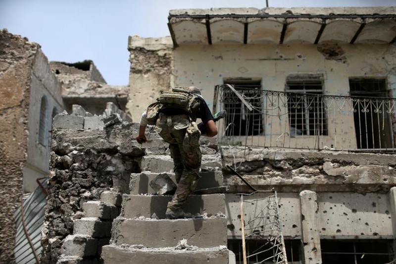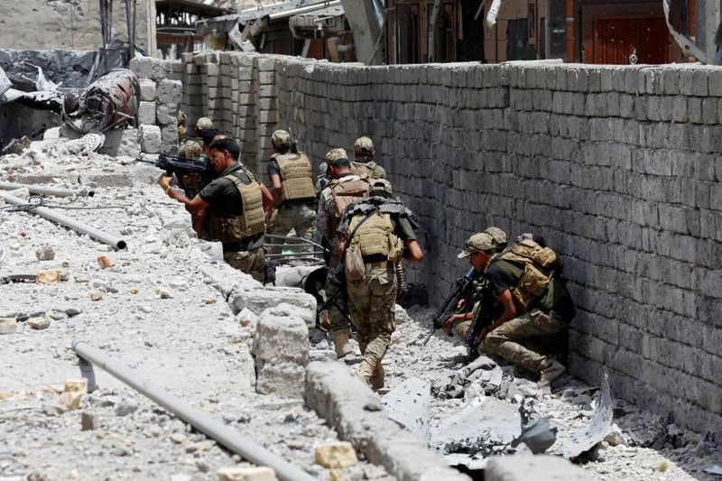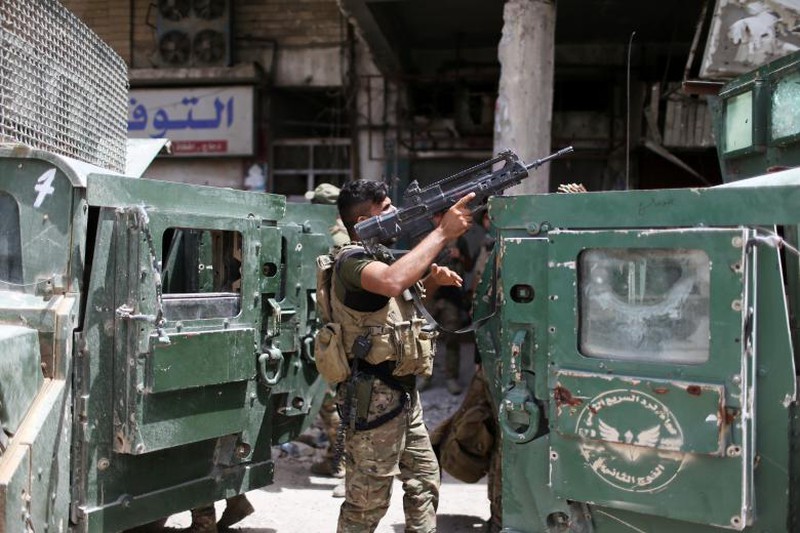 Thành viên lực lượng quân sự Iraq trong cuộc chiến chống IS ở Mosul. |