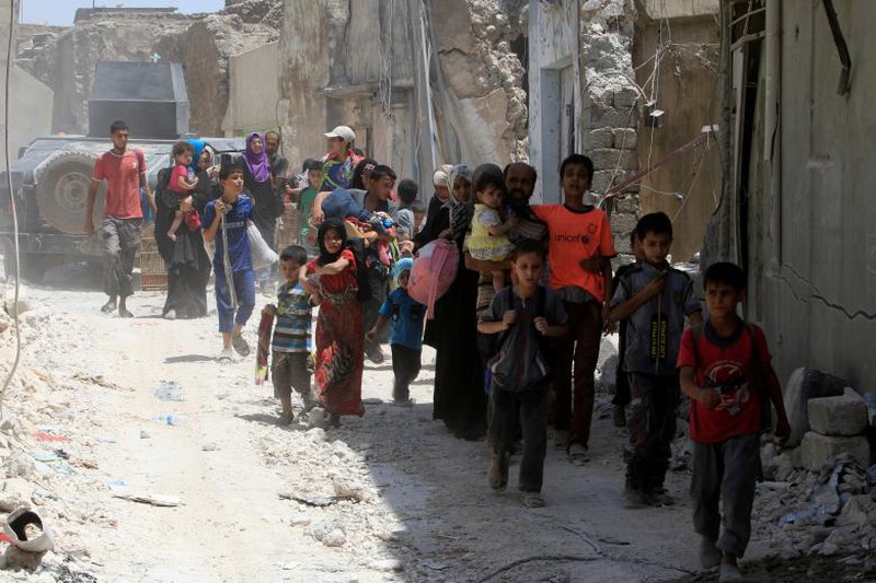 Người dân Mosul đi di tản đến nơi an toàn. |