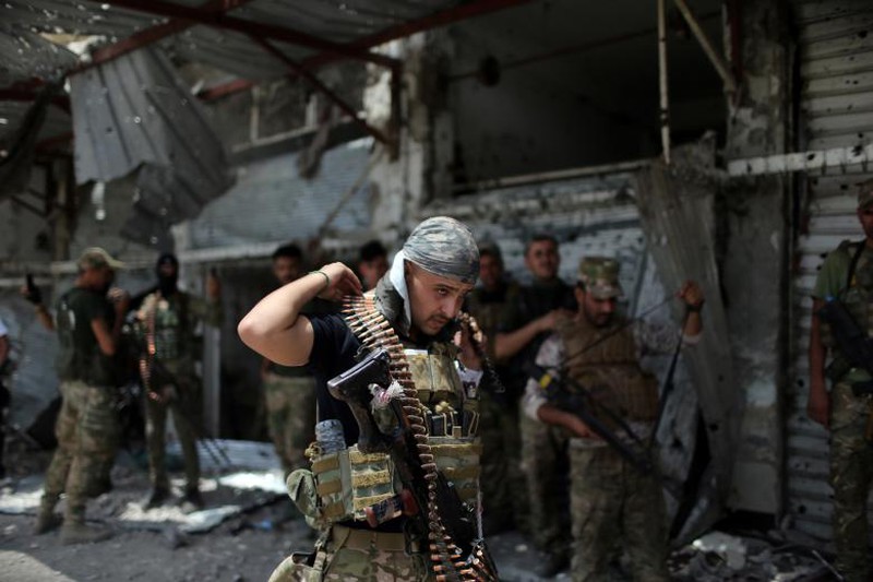 Thành viên Lực lượng Phản ứng nhanh Iraq trong cuộc chiến đánh bật những phiến quân IS cuối cùng ra khỏi thành phố. |