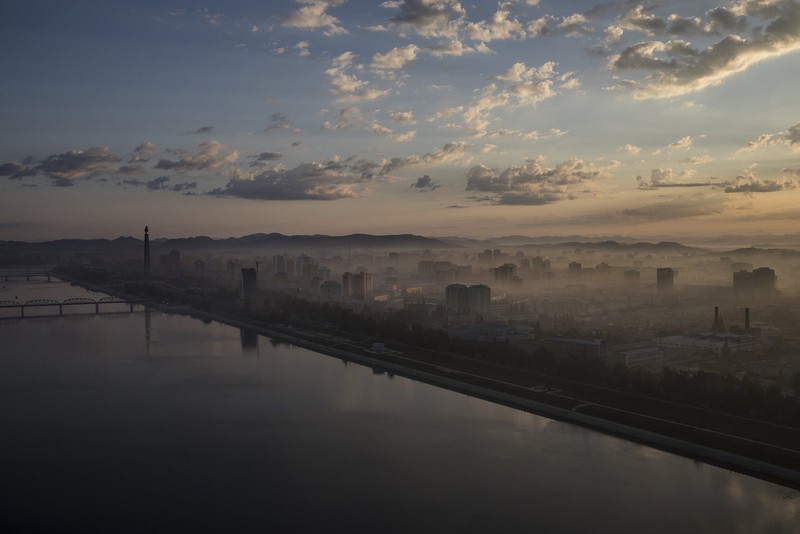 Thủ đô Bình Nhưỡng lúc sáng sớm. Bức ảnh này được chụp từ khách sạn Yanggakdo của thủ đô Triều Tiên. |