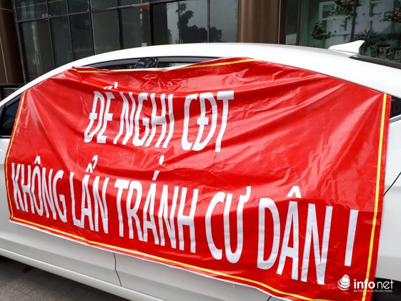 Theo đó, ô tô của cư dân đã phải đỗ cả đêm ở đường vào hầm và trên lối đi chung của tòa nhà ở mặt đường Lê Văn Lương. Cư dân muốn “đối thoại” với chủ đầu tư, nhưng chủ đầu tư vẫn “tránh”, vì vậy nhiều xế hập căng băng rôn đề chữ “Đề nghị chủ đầu tư không lẩn tránh cư dân”.