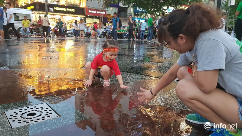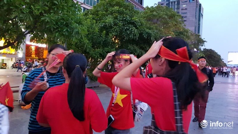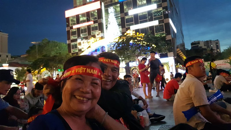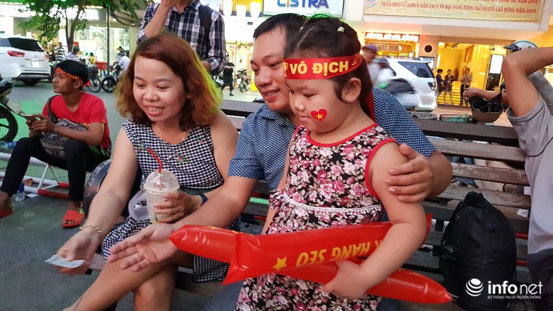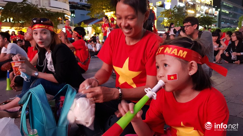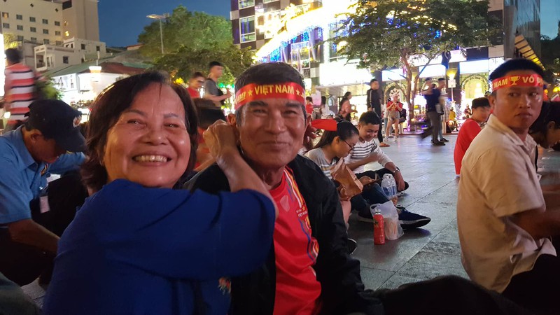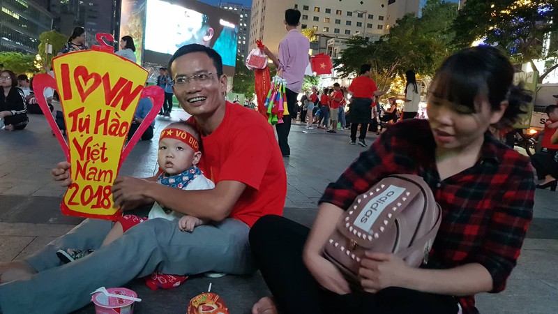 Xa xa, vợ chồng anh Phú (38 tuổi, ngụ quận Tân Phú) đang cho con trai 18 tuổi uống sữa. Anh Phú cho biết, những trận gần đây, không trận nào vợ chồng anh cùng con trai bỏ xem bóng đá tại phố đi bộ Nguyễn Huệ. Anh Phú nhận định, trận chiến sinh tử này, đội tuyển Việt Nam sẽ gặp rất nhiều khó khăn nhưng anh tin rằng, đội tuyển Việt Nam sẽ hòa hoặc thắng.