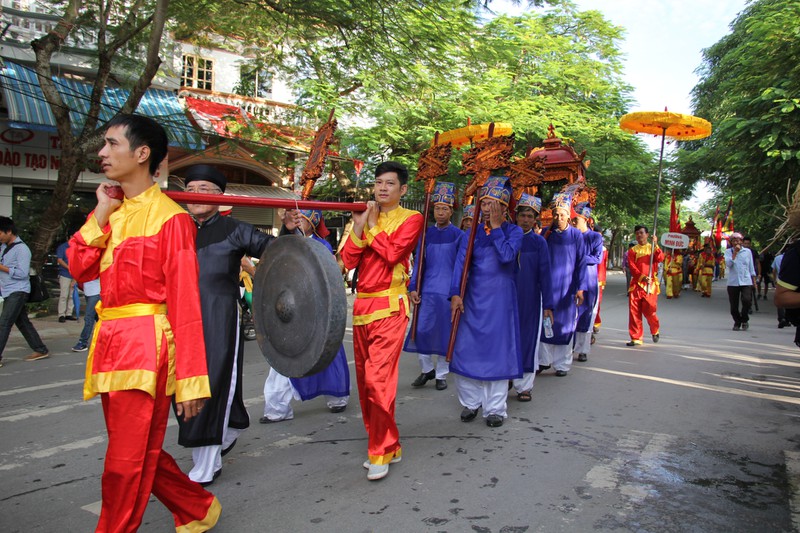 Lễ rước thần hoàng trước khi khai mạc lễ hội chọi trâu. |