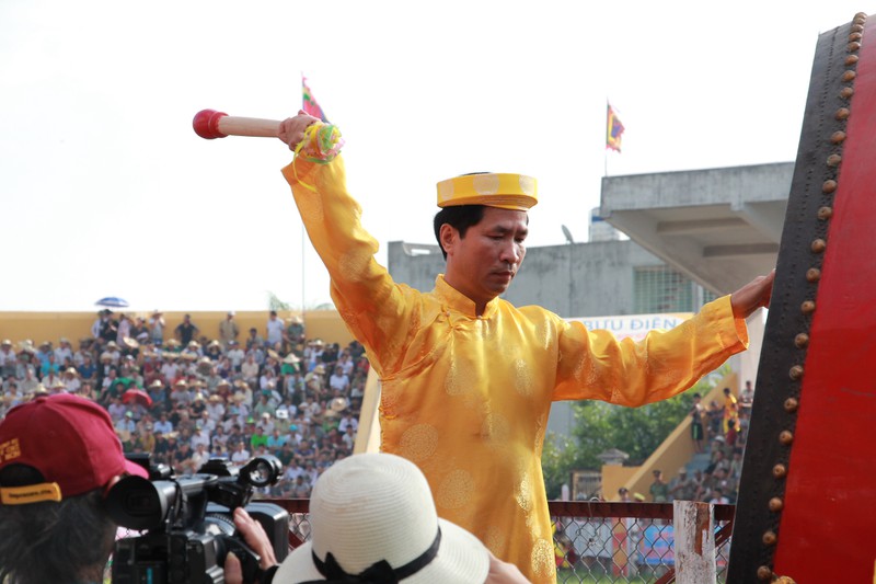 Chủ tịch UBND quận Đồ Sơn đánh trống khai mạc lễ hội. |