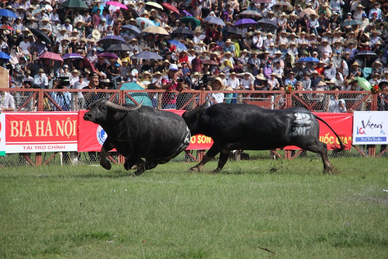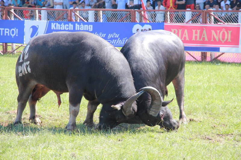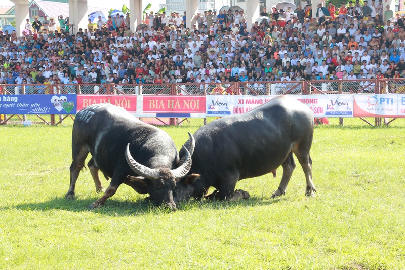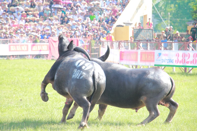 Sau tiếng trống khai mạc, các "ông trâu" đã làm nóng lễ hội bằng những màn tỷ thí dũng mãnh.