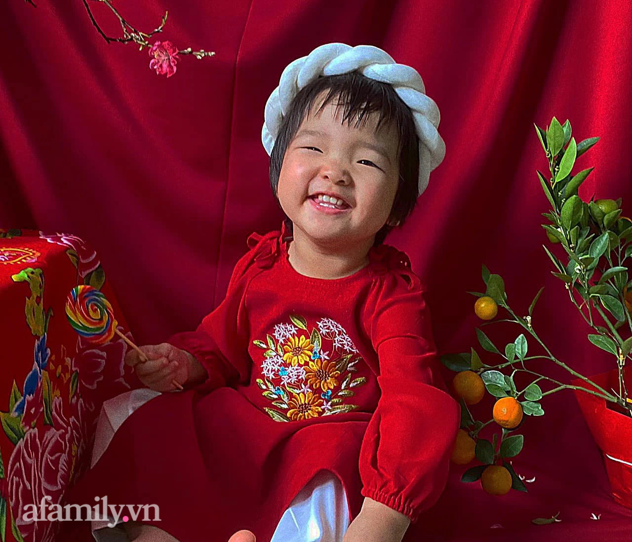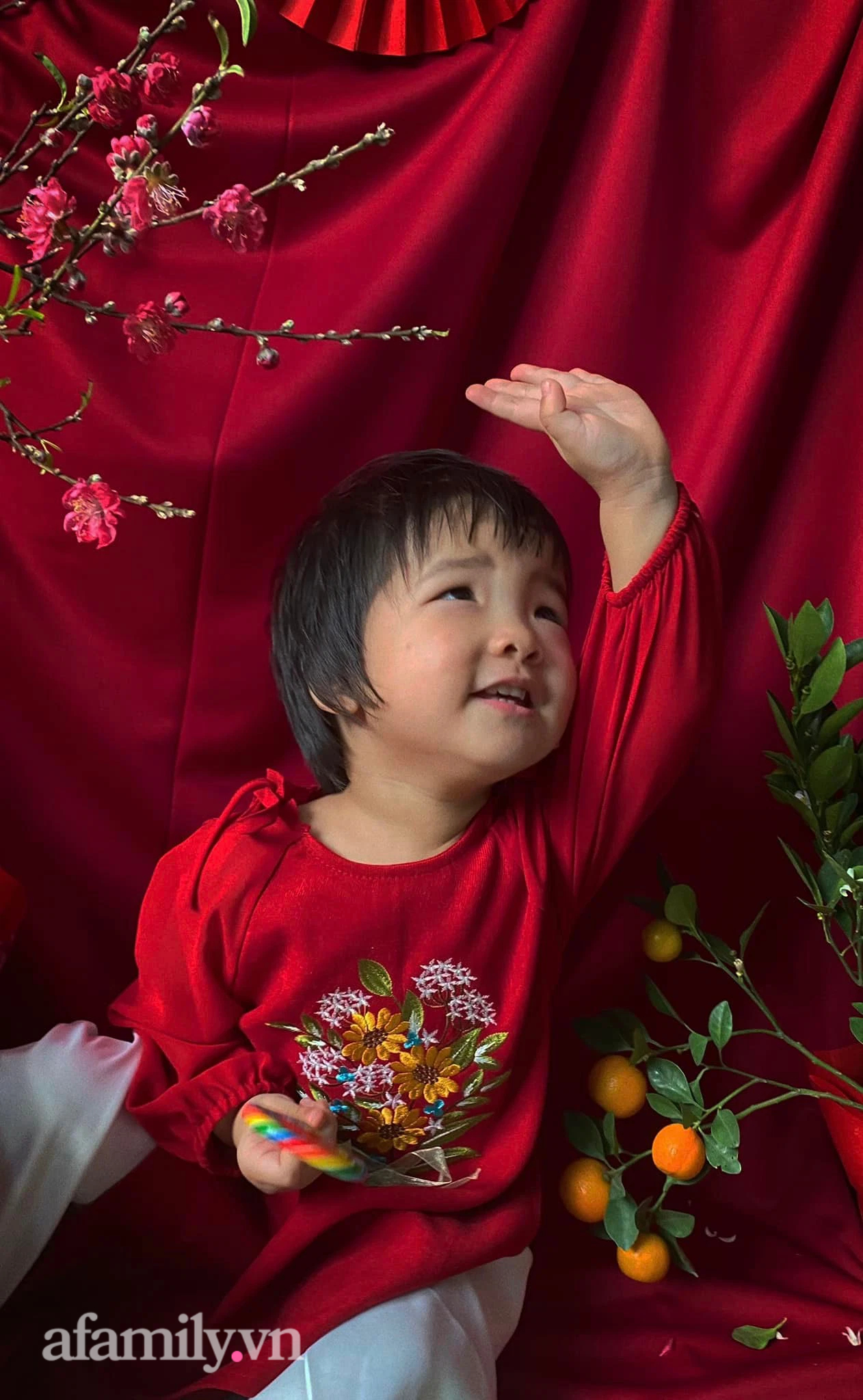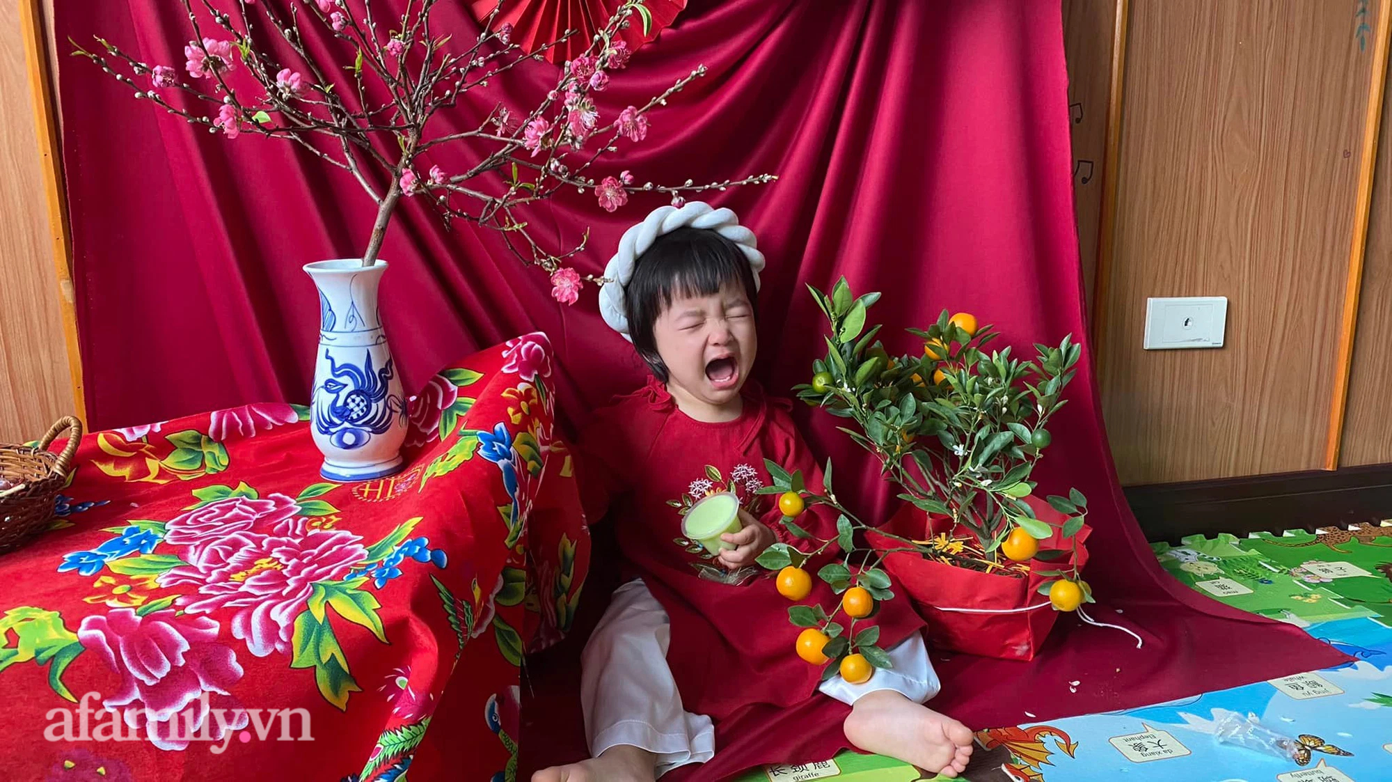 Chị Hoàng Lan (sống tại Hà Nội) vừa khoe bộ ảnh đón Tết của con gái Nhật Hạ (biệt danh Mỡ, 21 tháng tuổi) khiến mọi người cười xỉu. Với background đỏ rực rỡ, cành đào, cây quất đầy đủ nhưng mẫu chính hơi có vẻ như không thèm hợp tác mấy. Trong bộ áo dài màu đỏ dịu dàng, em bé Mỡ từ khóc sang cười, nước mắt rơi lã chã rồi lại lè lưỡi trêu đùa. Chán chê, Mỡ nằm luôn ra sàn chẳng thèm chụp ảnh gì hết.