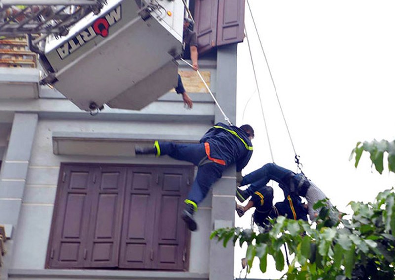 Cũng trong ngày 5/7, đồng chí Khúc Nguyên Khánh đã chỉ huy đồng đội đu dây, tiếp cận giải cứu một thanh niên có ý định nhảy lầu tự tử. |
