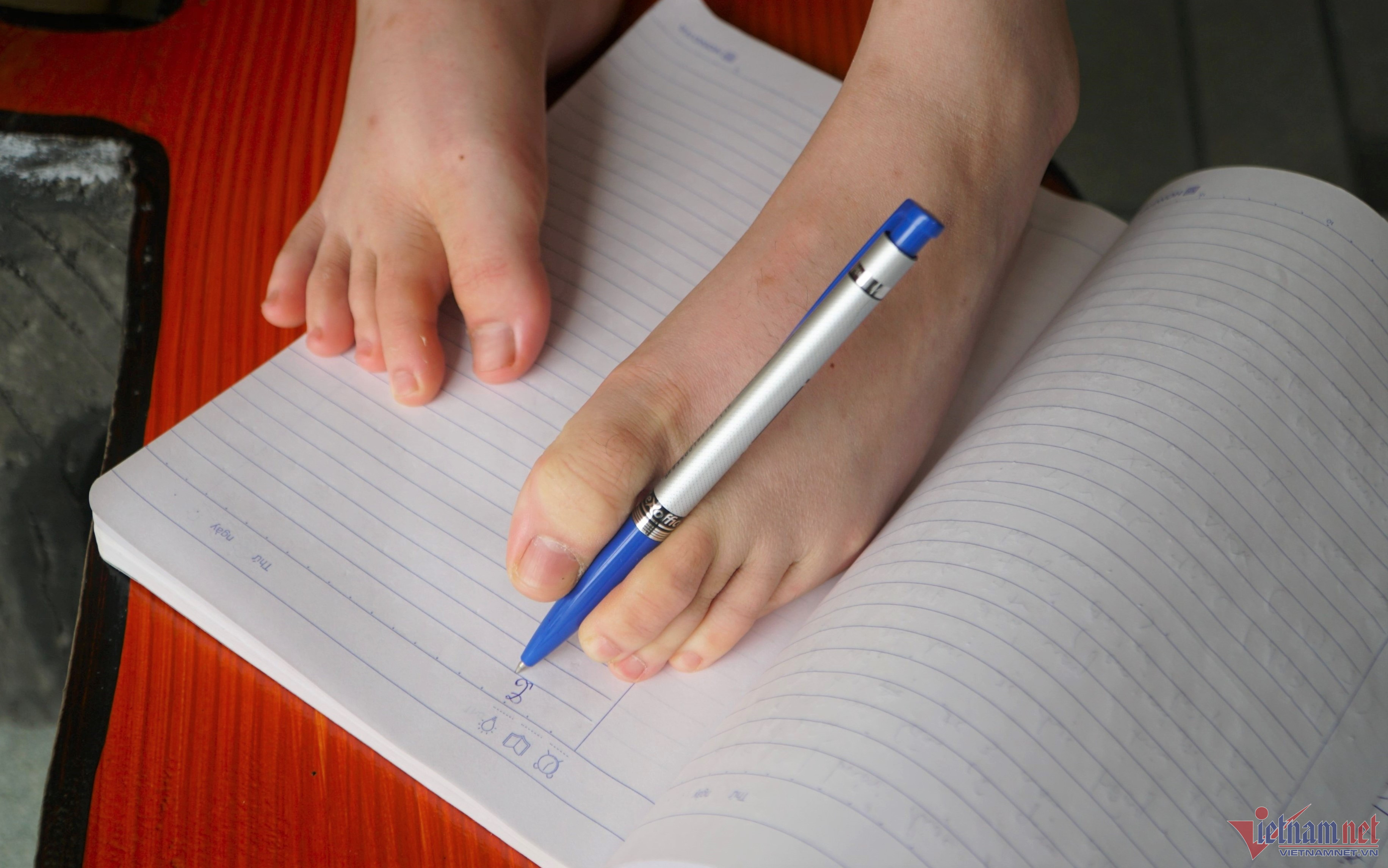 “Ngày vào cấp một, học trên lớp đã khó khăn, về nhà lại phải làm rất nhiều bài tập khiến đôi bàn chân Thắm tứa máu. Nhiều lúc chân tê cứng không thể viết theo ý mình, em bật khóc”, Thắm nhớ lại.