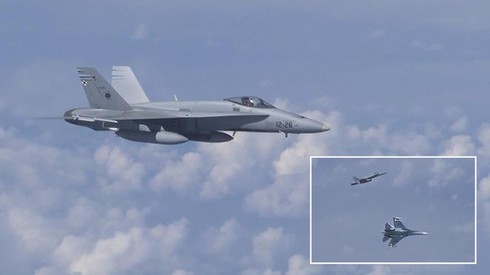 Máy bay chiến đấu F-18 Tây Ban Nha áp sát chuyên cơ chở ông Shoigu trên biển Baltic tháng 8/2019. Nguồn: Ifeng. |