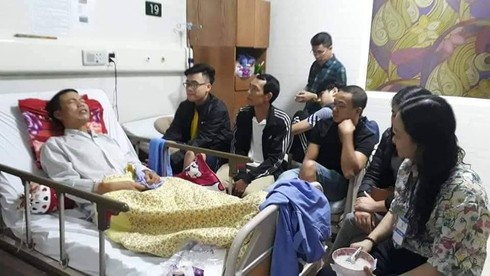 Cả gia đình anh Quý bên cạnh anh lúc điều trị ở viện |
