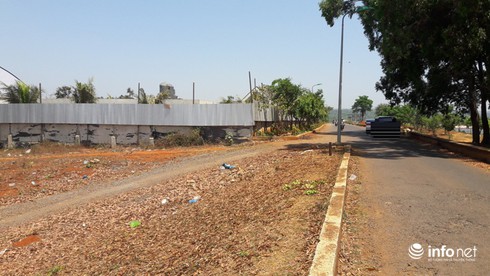 Khu vực hoa viên cây xanh, đường đi bộ với diện tích 21.940m2, đang được chủ đầu tư vận chuyển hàng ngàn mét khối đất về san lấp mặt bằng.