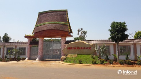 Cổng vào được xây dựng hết sức kiên cố và vững chãi, cổng đặt một tấm đá lớn khắc chữ “Điểm văn hóa xã Ea Kao”.