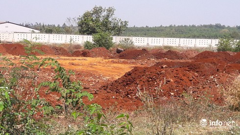 Chủ đầu tư đang vận chuyển hàng ngàn mét khối đất về san lấp mặt bằng. |