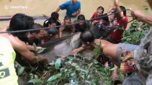 Video dân làng giải cứu ca tra dầu khủng nặng 200 kg