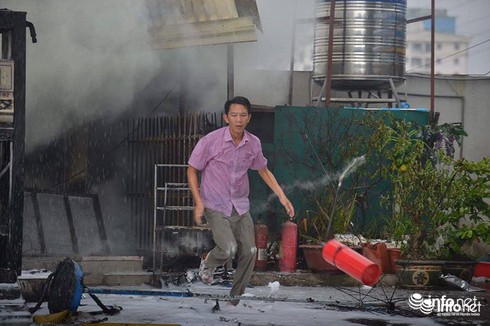 Anh Khánh dập lửa tại cây xăng Đền Lừ. |