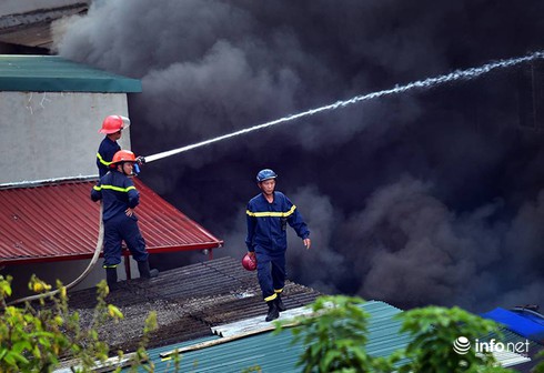 Anh Khúc Nguyên Khánh trong một lần chỉ huy chữa cháy tại khu nhà xưởng cũ trên phố Tân Mai. |