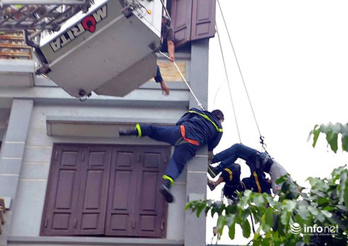 Đội Cứu nạn Cứu hộ CS PCCC Số 8 giải cứu người đàn ông định nhảy lầu tự tử vào ngày 5/7/2016. |